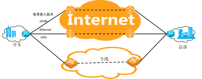 传统企业应用,包括e-mail、文件共享、Web应用等,采用集中部署的方式,通常企业会在总部部署数据中心,并通过租用运营商专线(包括SDH、OTN、Ethernet、MPLS等),将分支机构连接到数据中心)。运营商承诺专线业务的SLA,包括带宽、时延、抖动、丢包率等,满足企业在各分支机构部署各种应用的需求(比如,存储服务、统一通信系统等)。传统专线网络可获取性比较差,光纤/电路需要单独部署,耗费的周期长;专线跨越多个网络/运营商时,业务开通周期更长;并且,专线价格昂贵,业务不能够灵活订购,通常需要比较长的合同周期(也是因为业务的开通成本比较高)。为尽可能提升专线的利用率,各种WAN优化及应用加速技术应运而生,包括QoS流控、TCP协议优化、协议代理、数据缓存技术、数据压缩技术等。